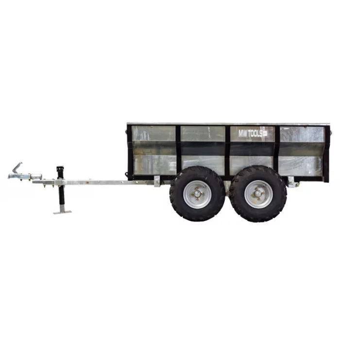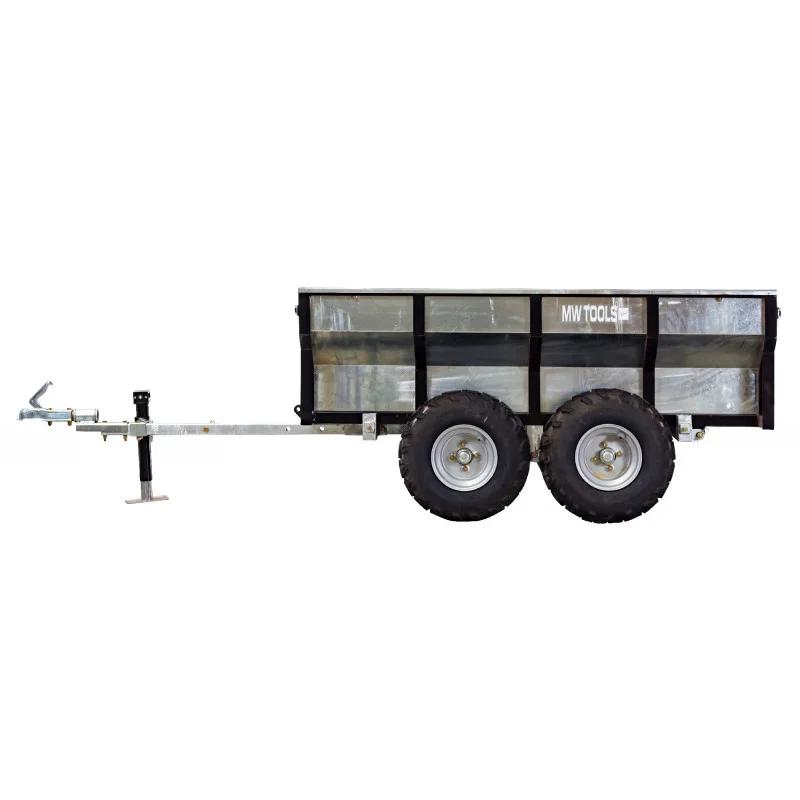 Este robusto remolque de doble eje con caja galvanizada está especialmente diseñado para soportar cargas de hasta 1000 kg. Está optimizado para trabajos pesados y transporte en terrenos difíciles gracias a su construcción duradera y su gran capacidad.